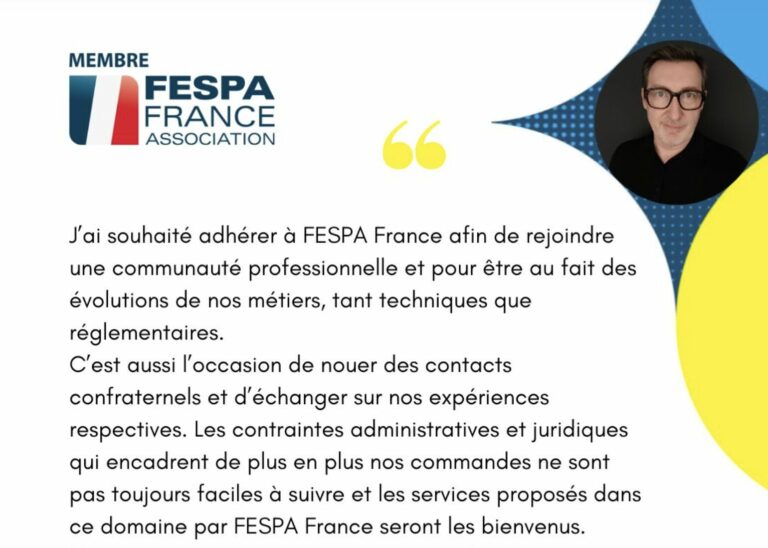 « J’ai souhaité adhérer à FESPA France afin de rejoindre une communauté professionnelle et pour être au fait des évolutions de nos métiers, tant techniques que